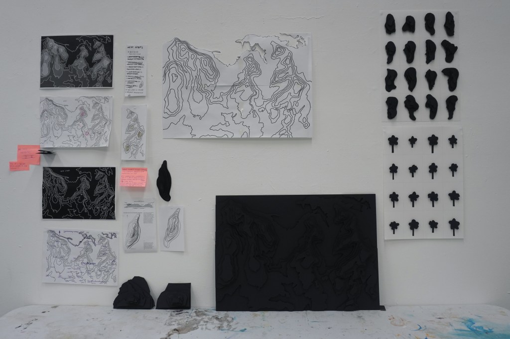 Month long artist residency at the Burren College of Art on the west coast of Ireland in October 2025. Experimented with mix media animation, stamps, topographic maps, projection mapping, video documentation, ecological research, and lenticular printing.